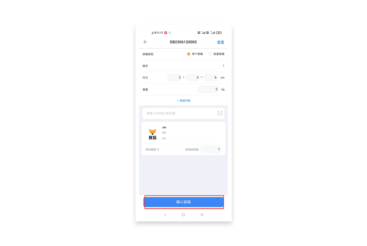注意:扫描FNSKU需校验FNSKU是否存在于当前调拨单且此FNSKU装箱量。