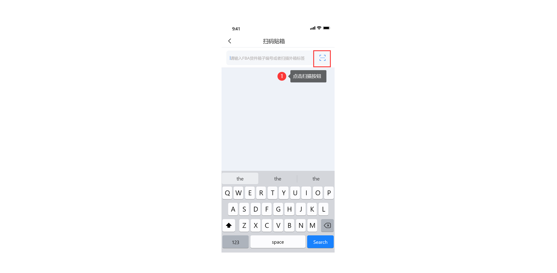 点击扫码贴箱,进入扫码贴箱页面