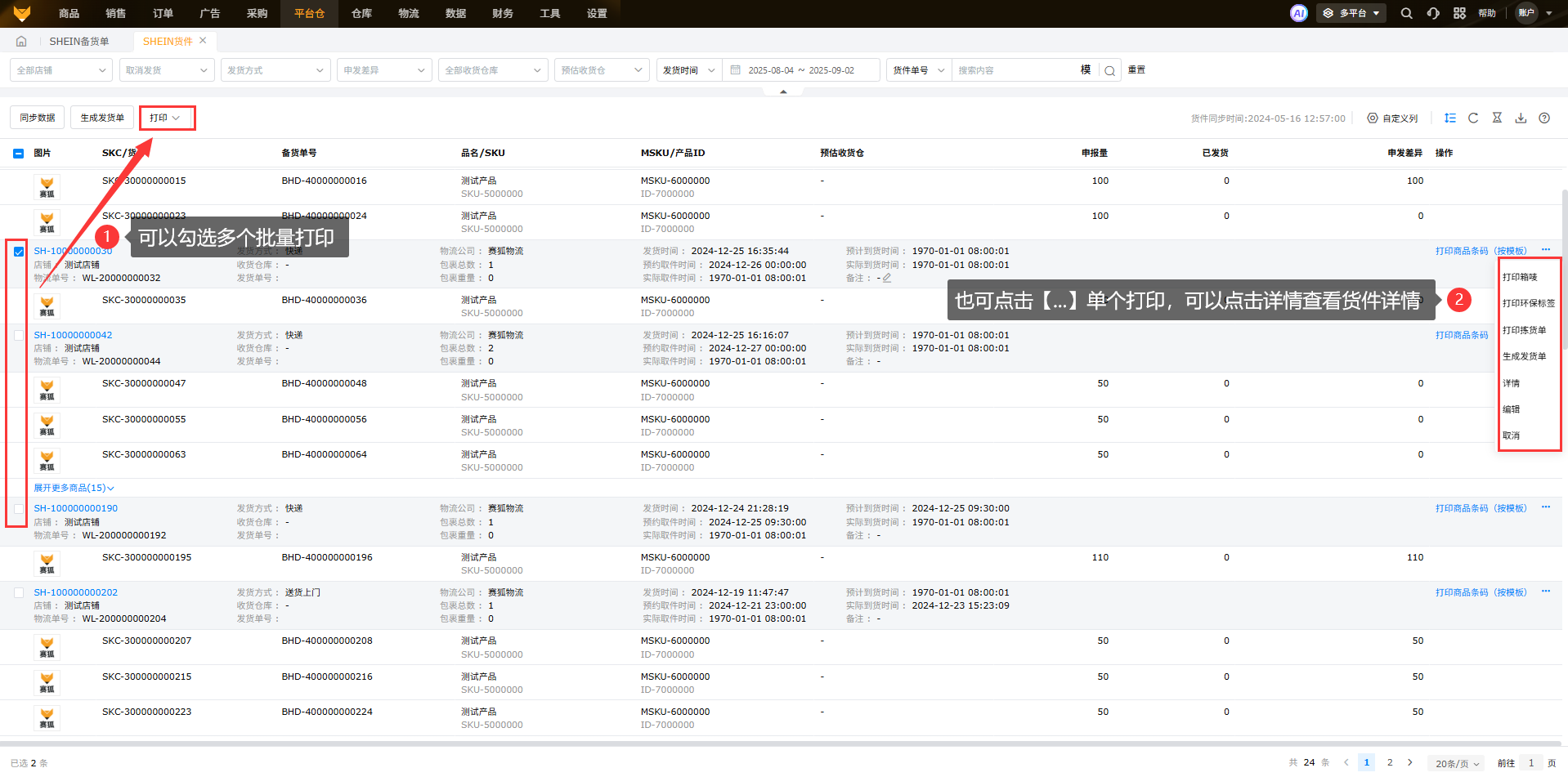同步SHEIN货件,支持打印商品标签、箱唛、环保标签、拣货单等。二、更新频率