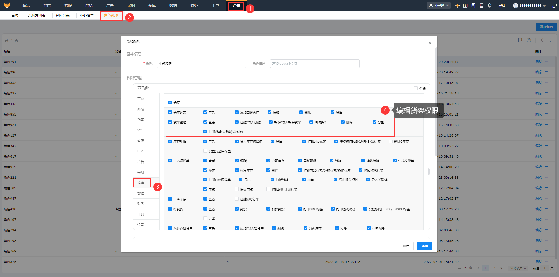 1.2在【设置】-【角色管理】勾选权限,子账号默认不勾选。