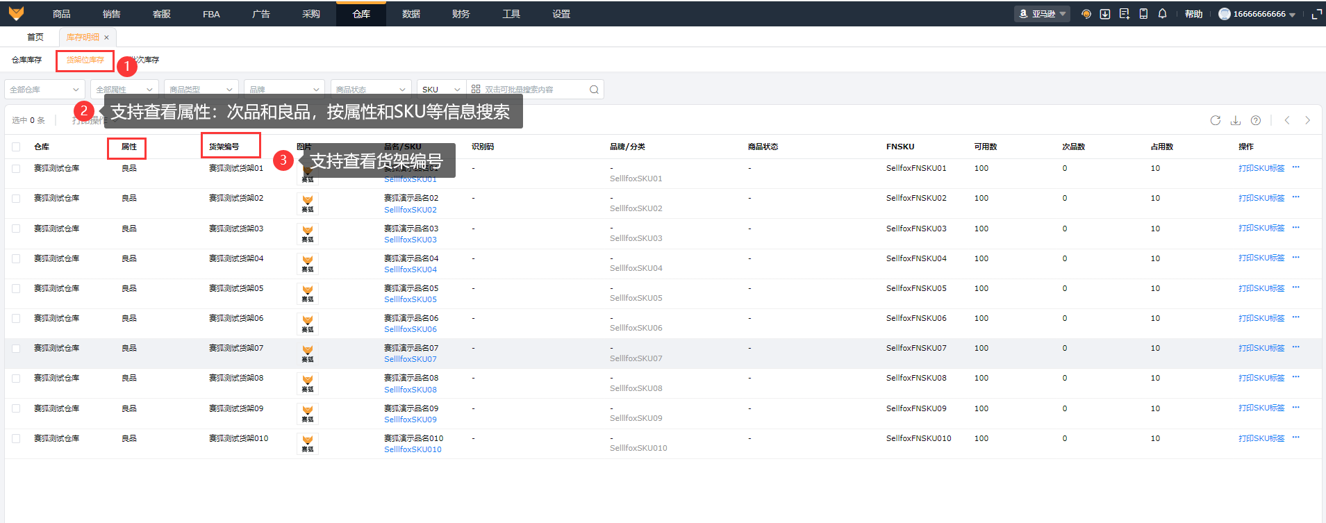 FBA&FBM:如上业务均能处理,一个SKU仅能存放一个货架位;