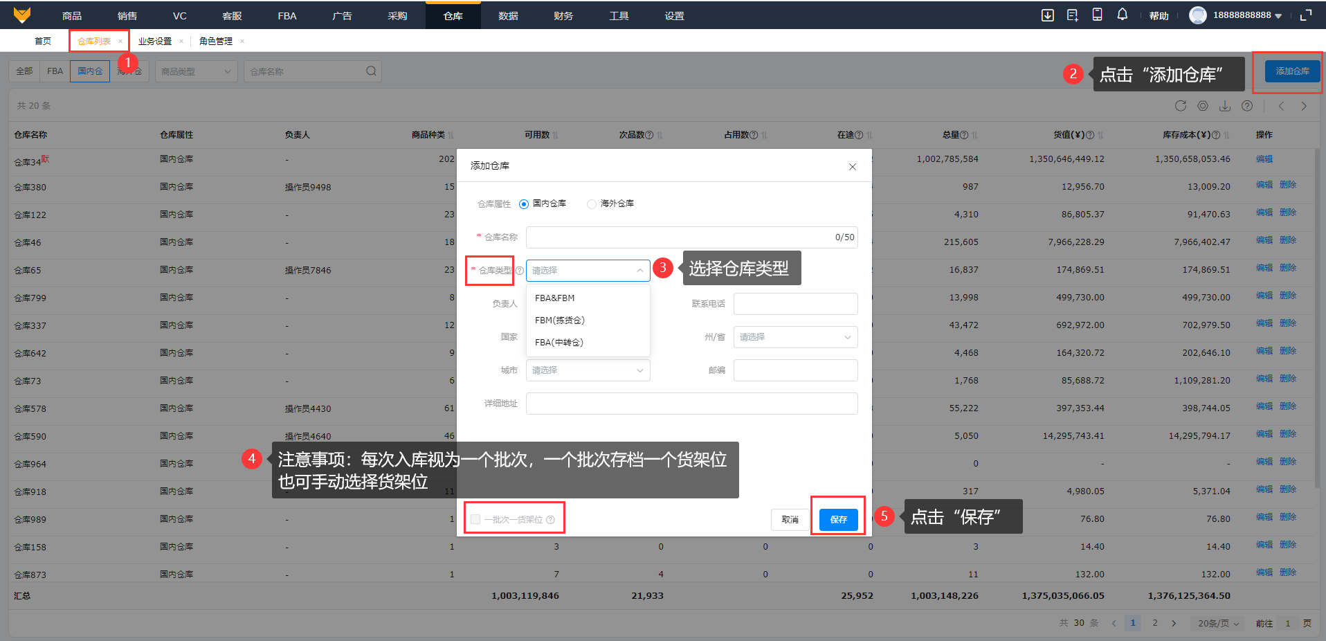 FBA(中转仓):仅能处理中转给亚马逊业务 ,该类型仓库可启用1批次1货架位;