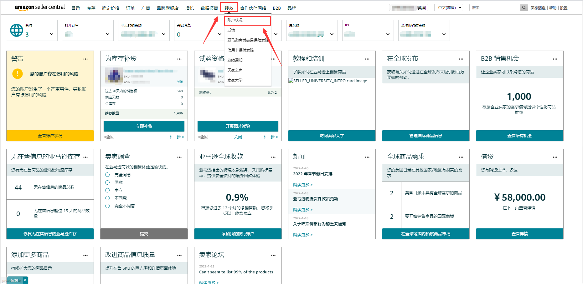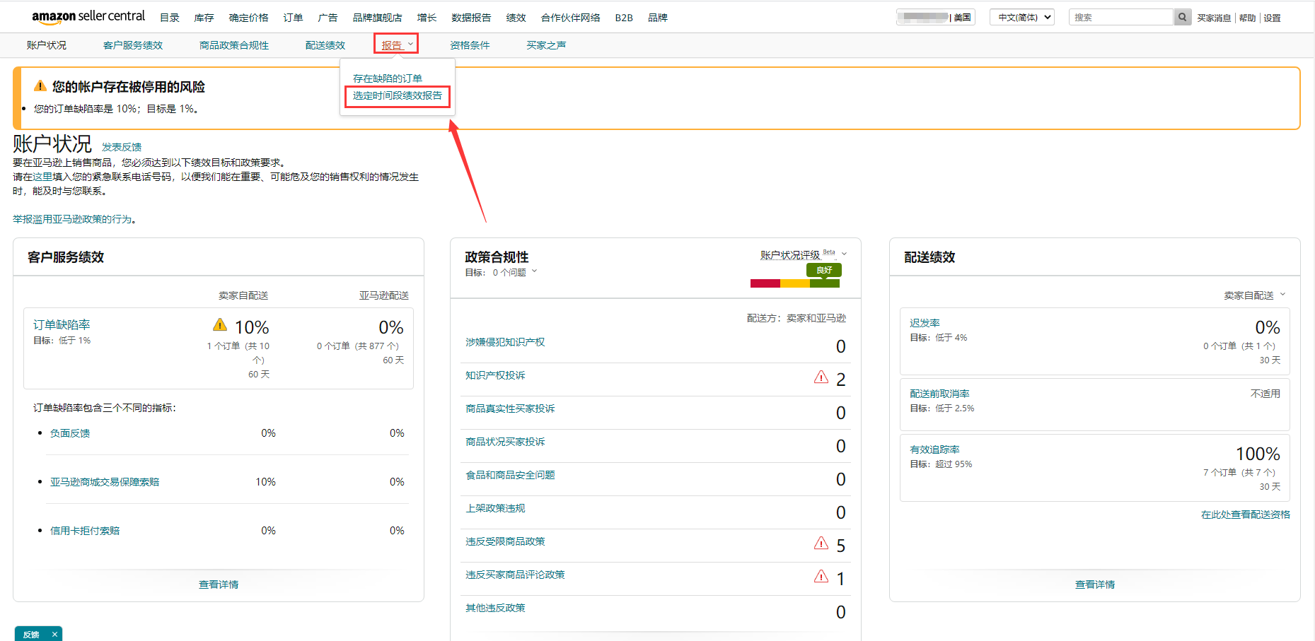 Q1:为什么查看亚马逊没有新的绩效,赛狐会提醒店铺绩效异常?