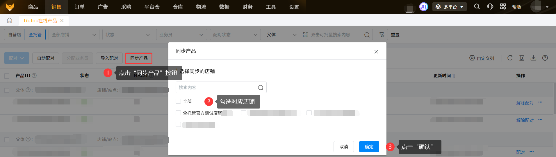 支持查看全托管店铺产品ID、状态、库存等信息。
