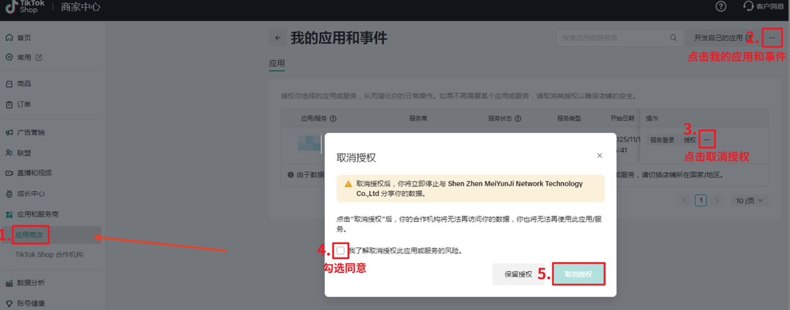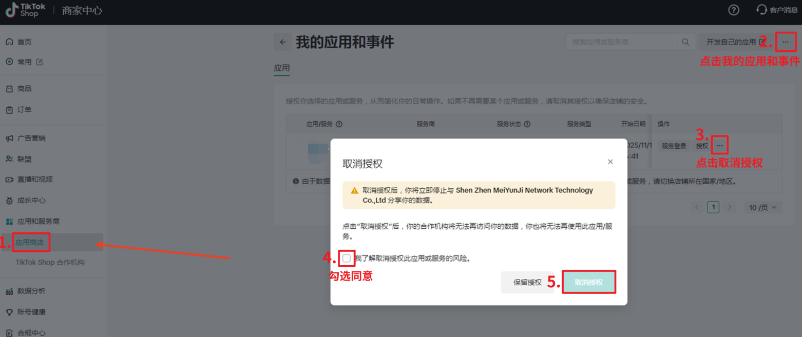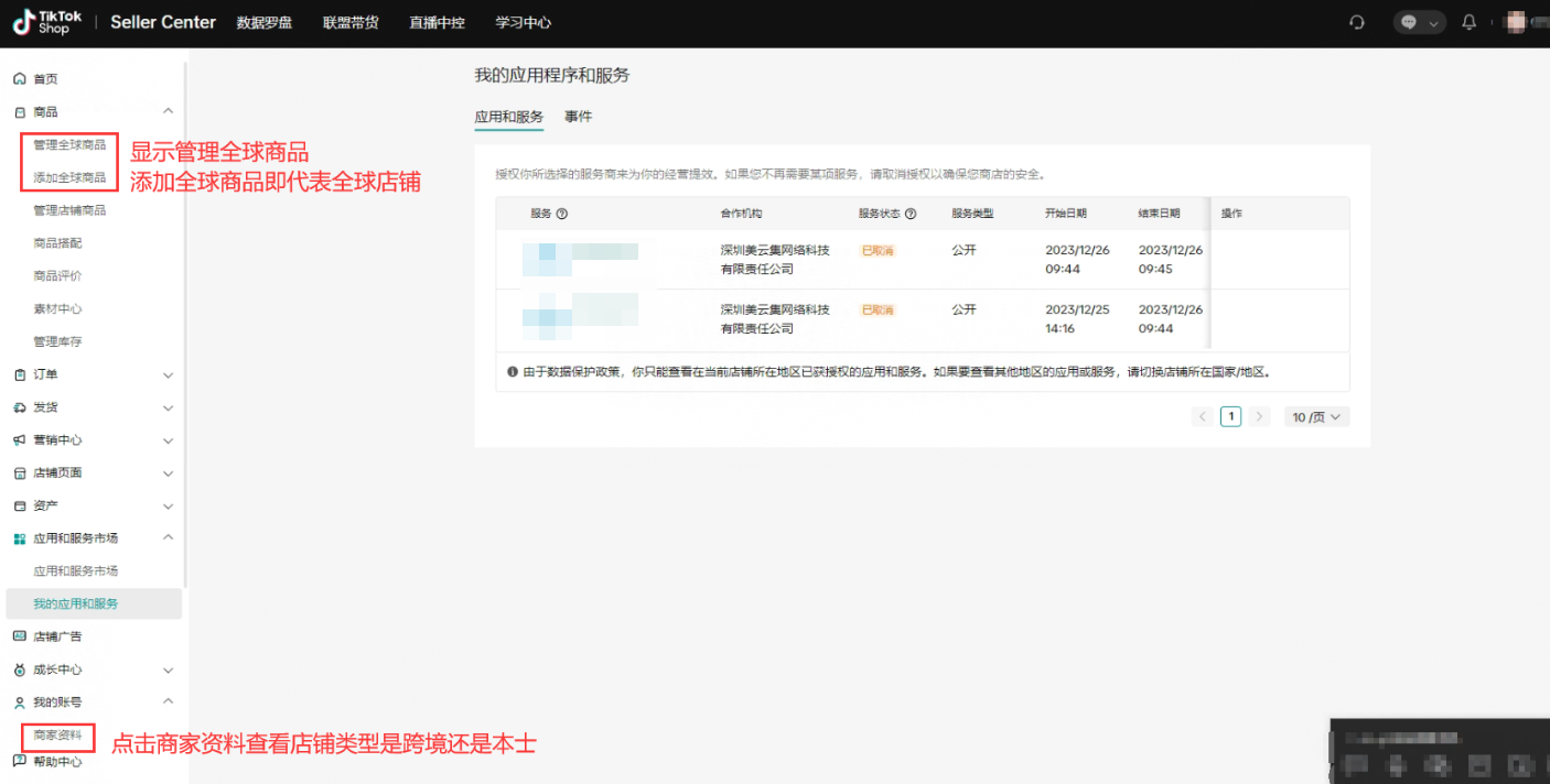注意:TikTok后台取消赛狐服务,不会删除赛狐的店铺授权记录,不影响数据。