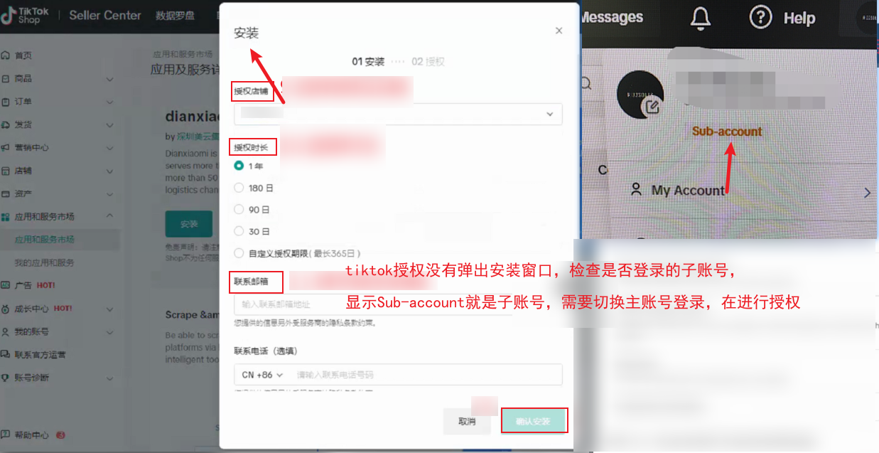 Q11:TikTok授权跳转到店铺后台没有弹出安装应用页面?