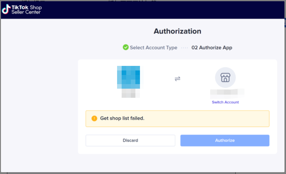Q9:TikTok授权的时候报错:找不到合适店铺?