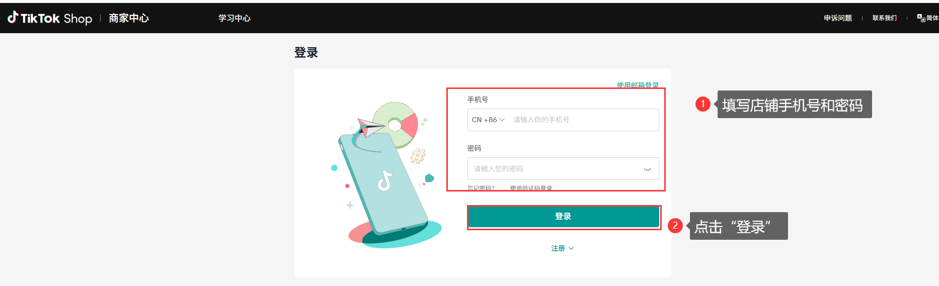 1.3 输入登陆店铺,登陆后按页面指引操作