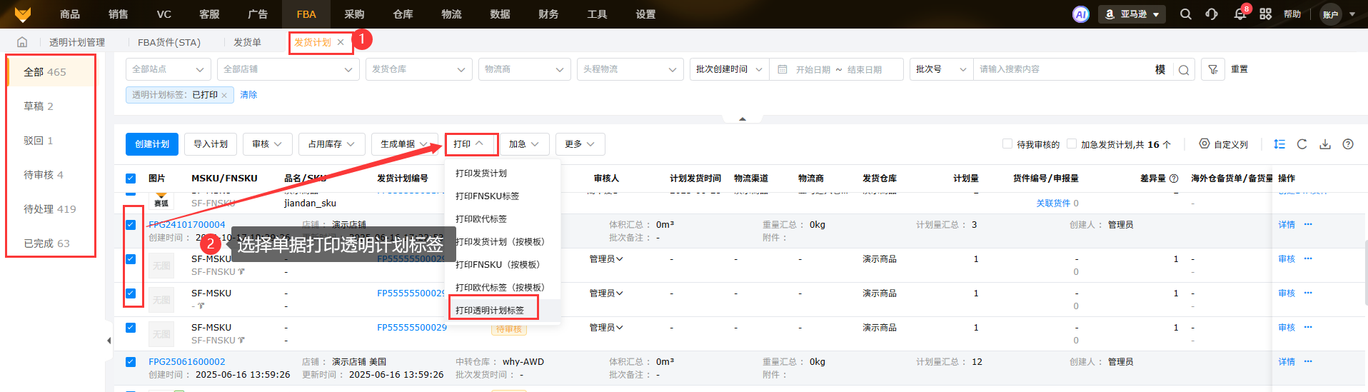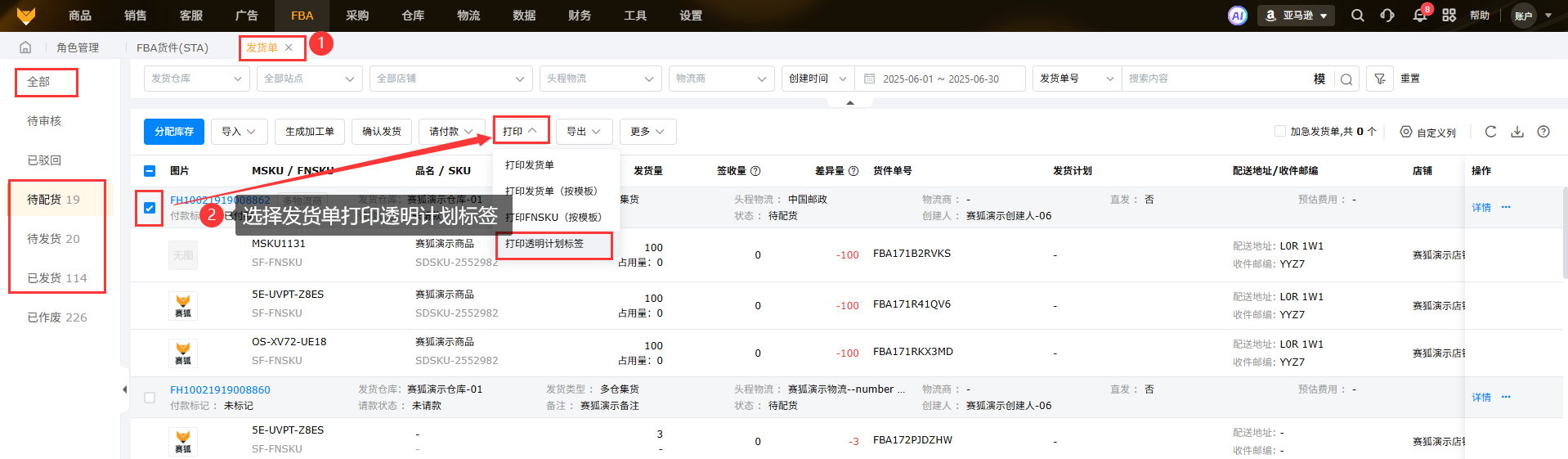支持待处理、已完成的发货计划打印透明计划标签