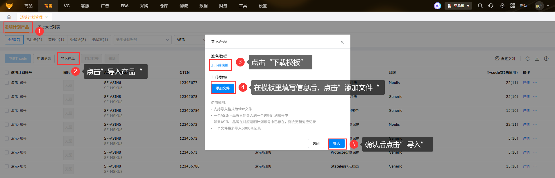 注意:导入时,GTIN非常重要,不能填写错误,申请T-Code时是以GTIN提交申请的。