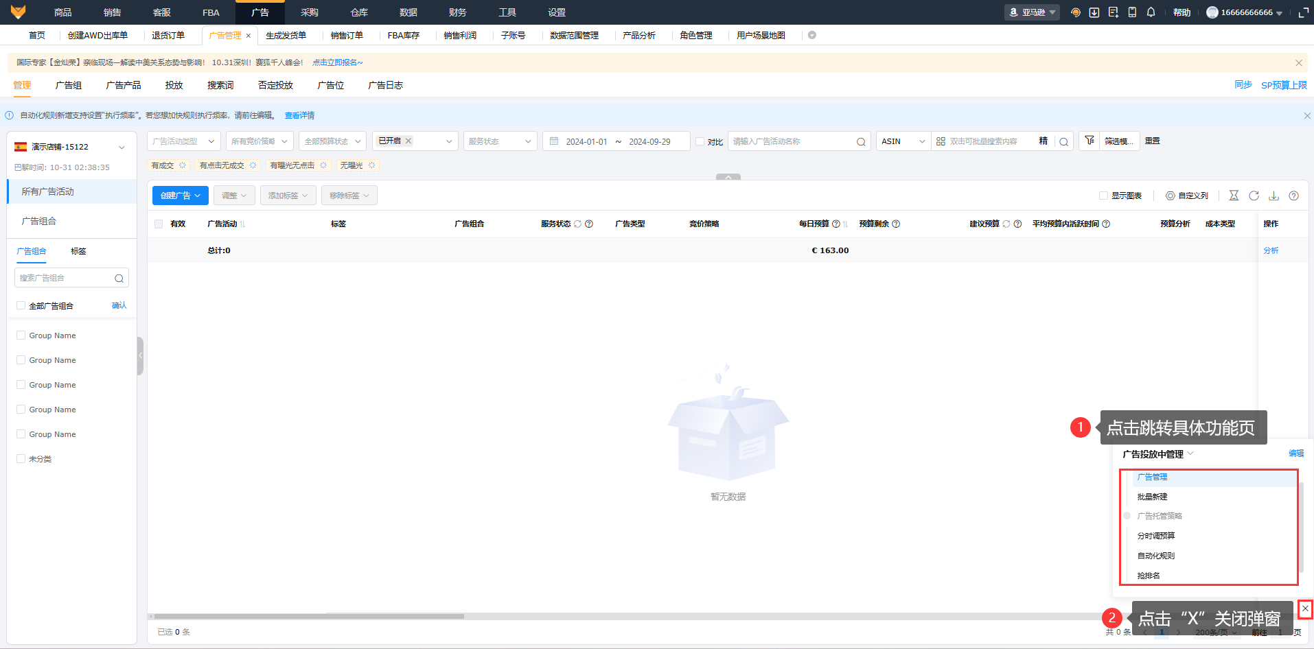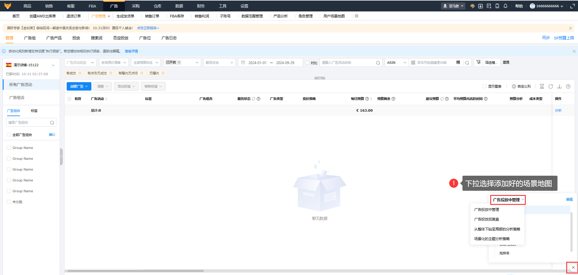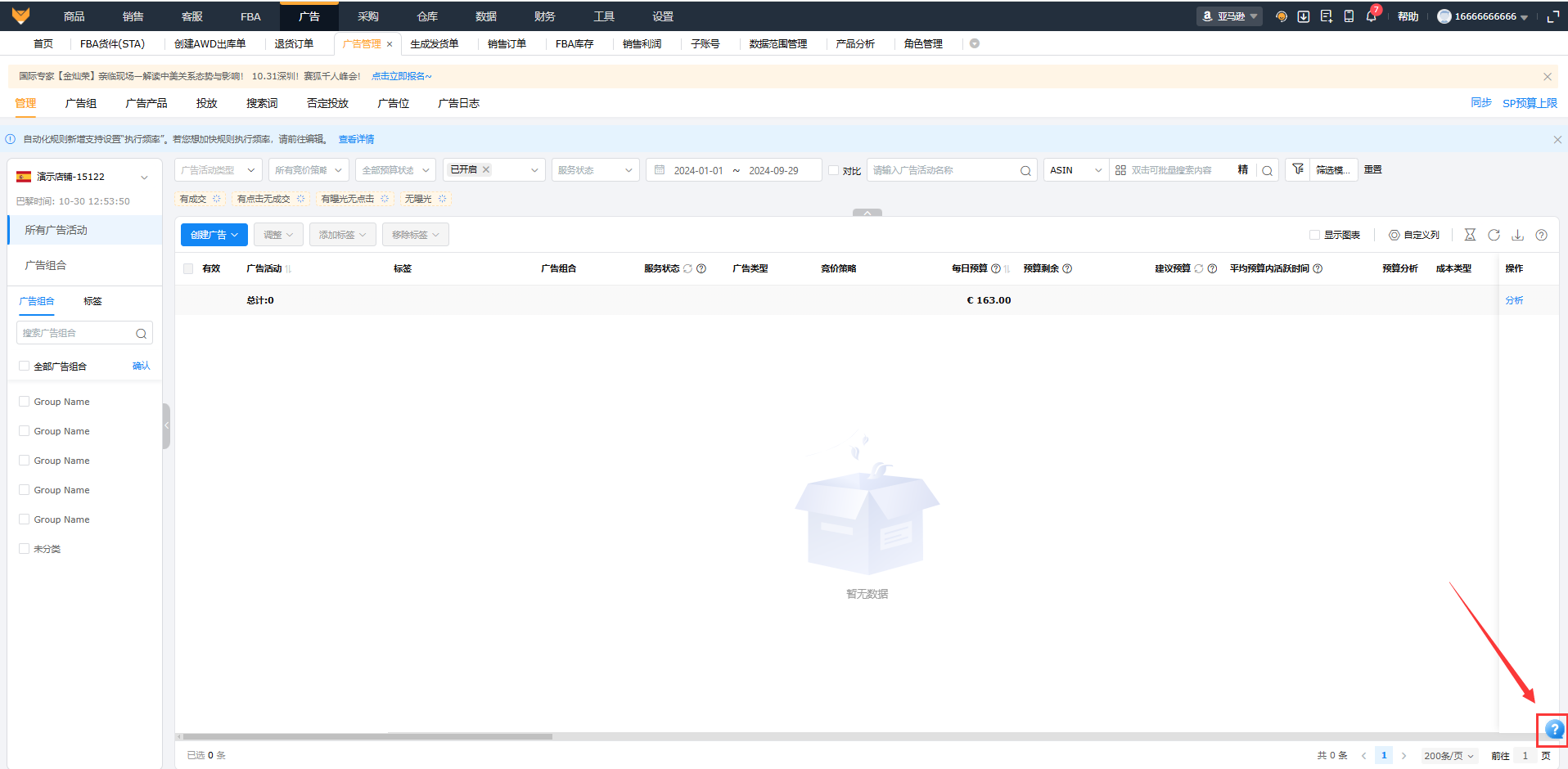 1.1、进入广告或者数据模块,任意功能页,点击页面右下角问号创建场景地图