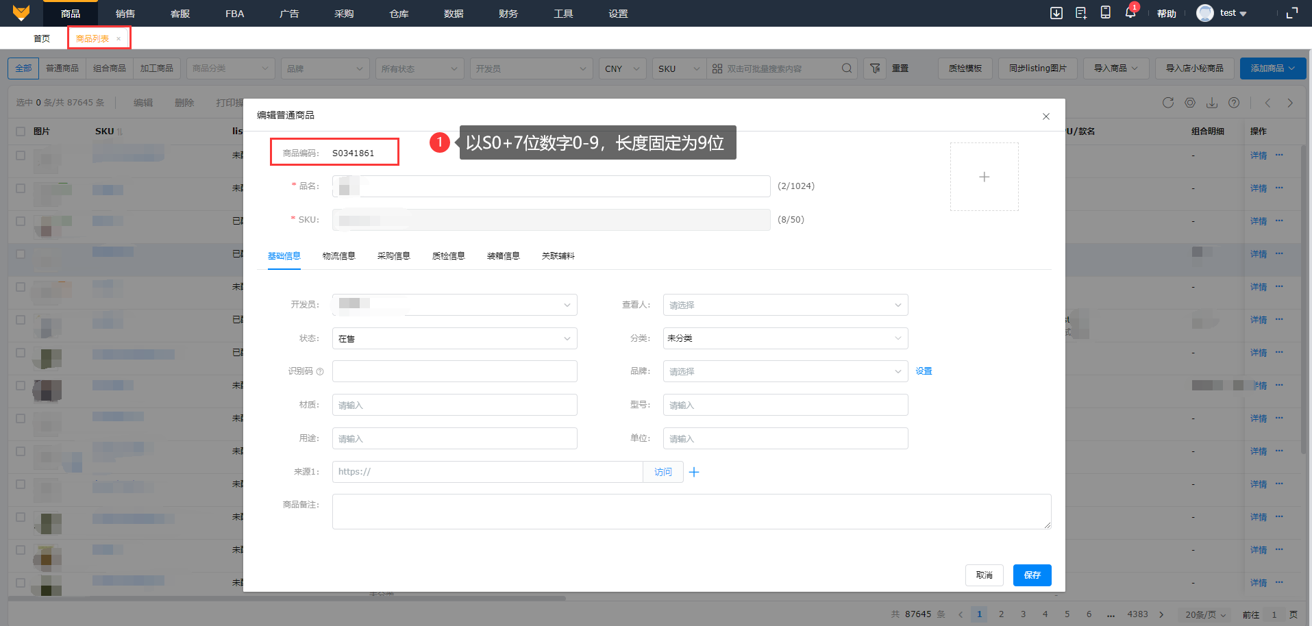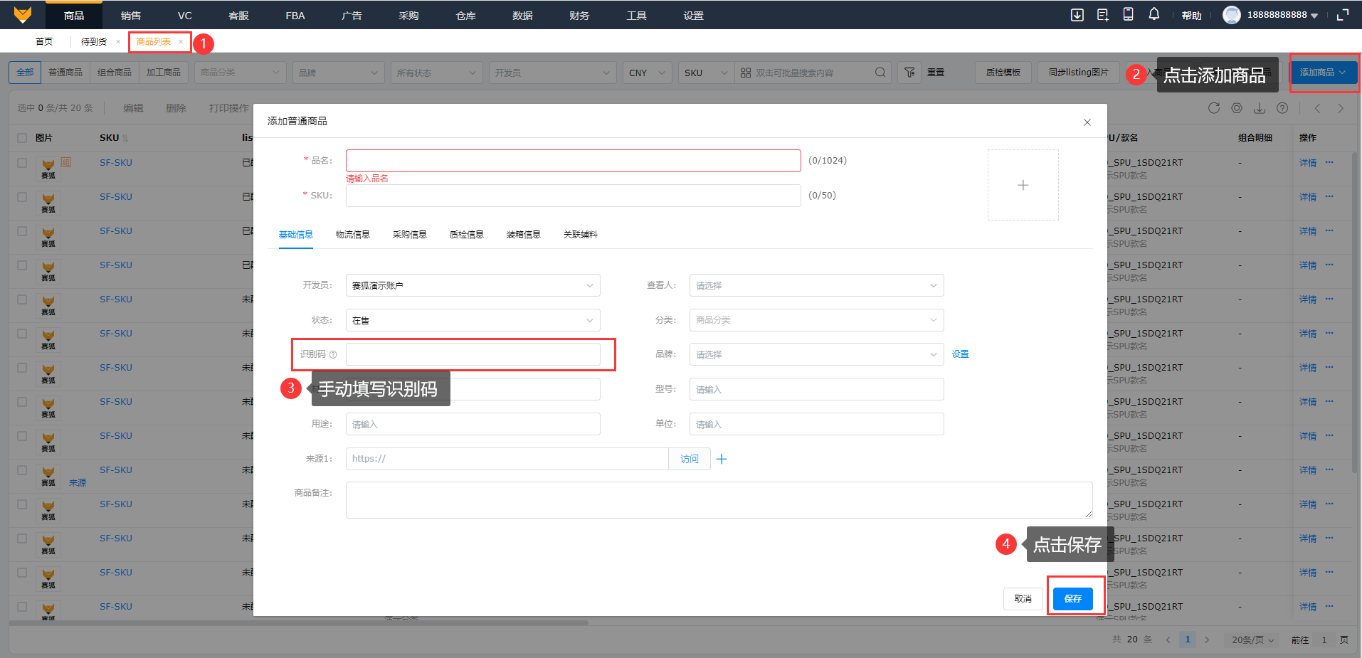 在【商品列表】点击添加商品成功后自动生成商品编码,支持在商品详情页手动添加识别码
