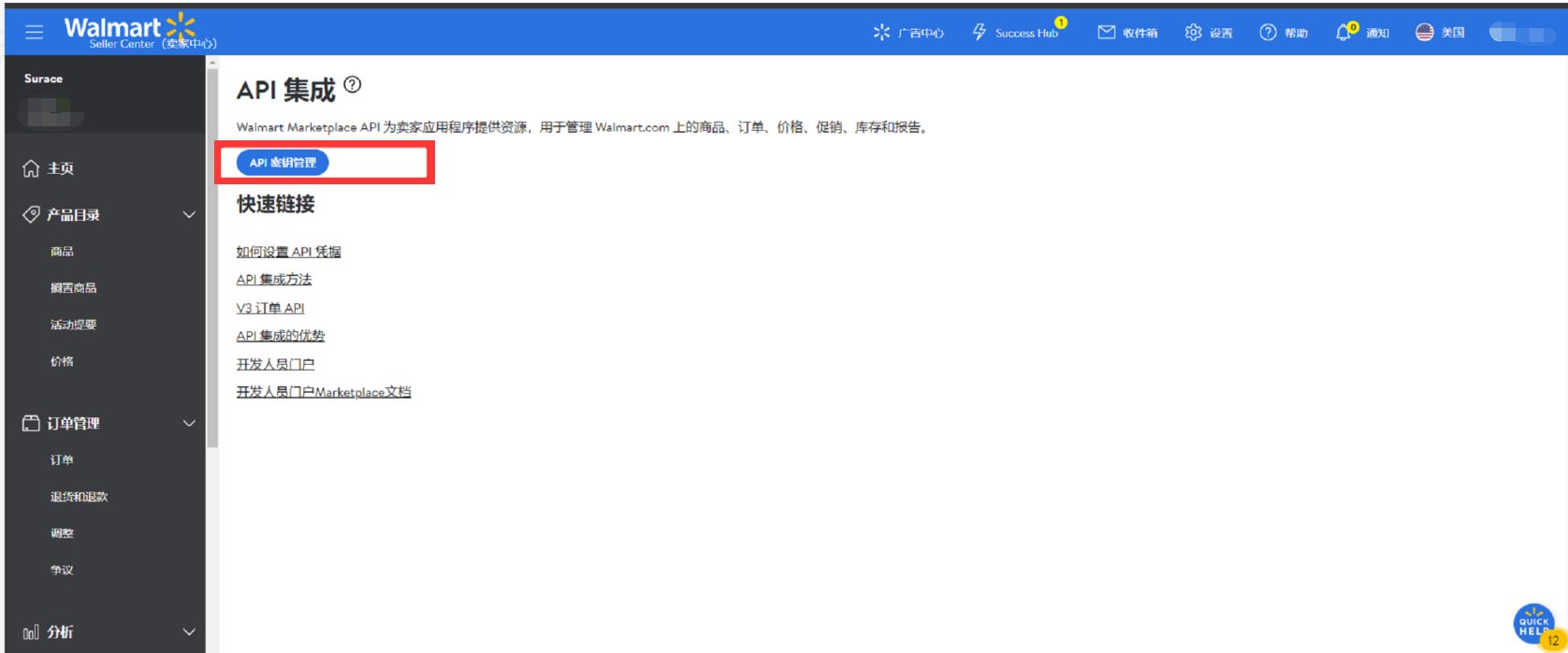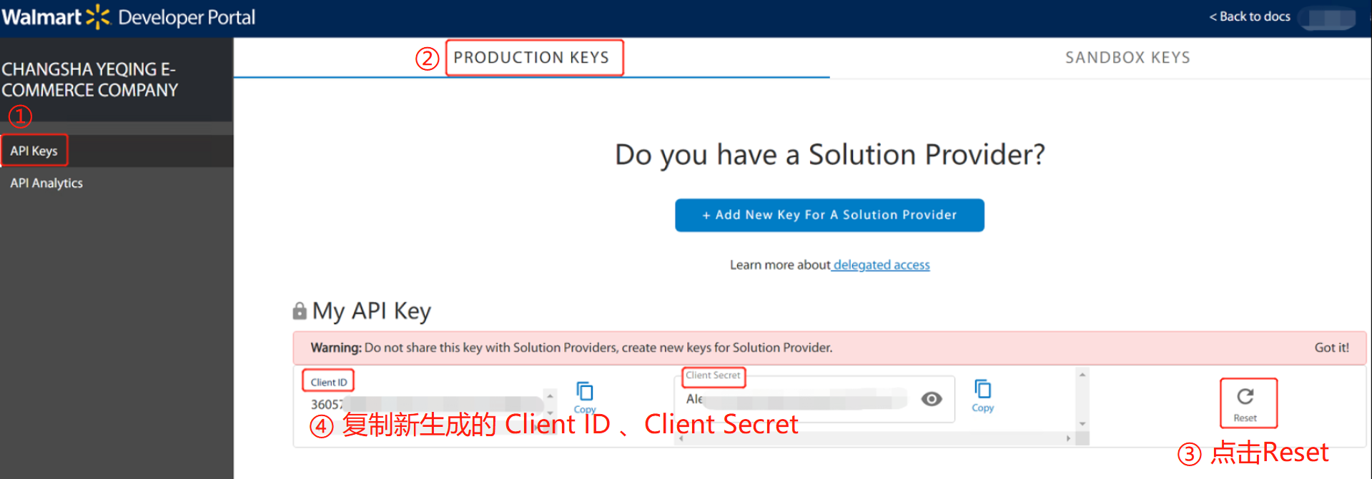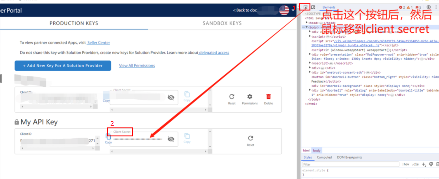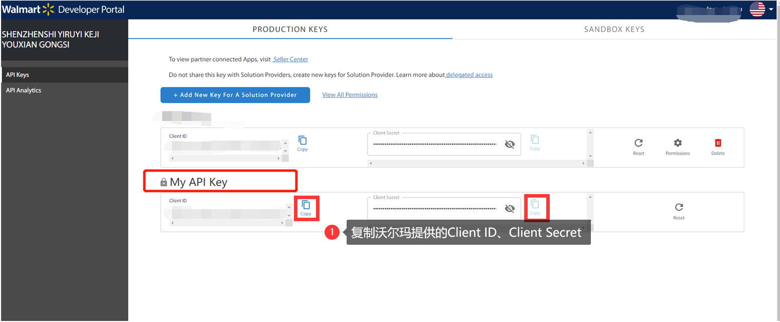 Q2:沃尔玛的API Key 的 Client Secret 无法查看,怎么解决?