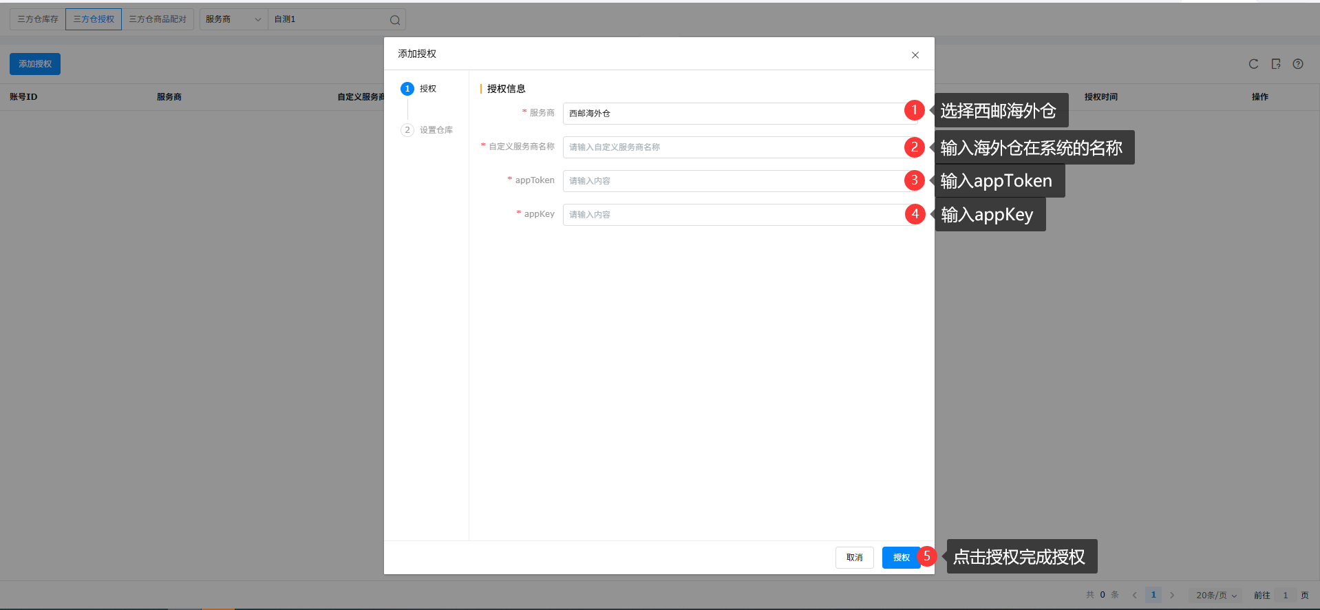 1、三方仓授权