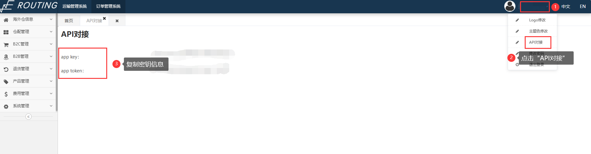 (2)海外仓后台获取授权信息:账户信息>API对接。