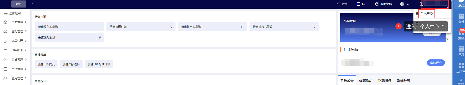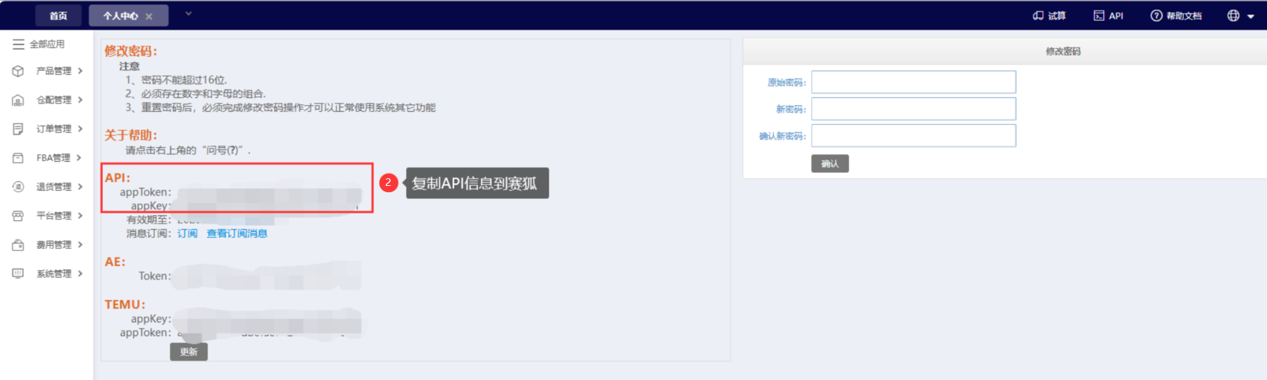 (2)海外仓后台获取授权信息:个人中心>API