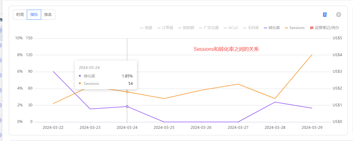 比如说是流量问题,那么针对流量组合部分进行关键指标拆解,影响流量的组成是Sessions、PV和转化率指标,那么通过观察Sessions和转化率的变化,找出问题点从而进行优化。优化的角度可以商品或促销的角度入手,比如是否排名下降了,关键词排名是否也下降,竞品价格是否降价、是否需要提报BD或LD等。