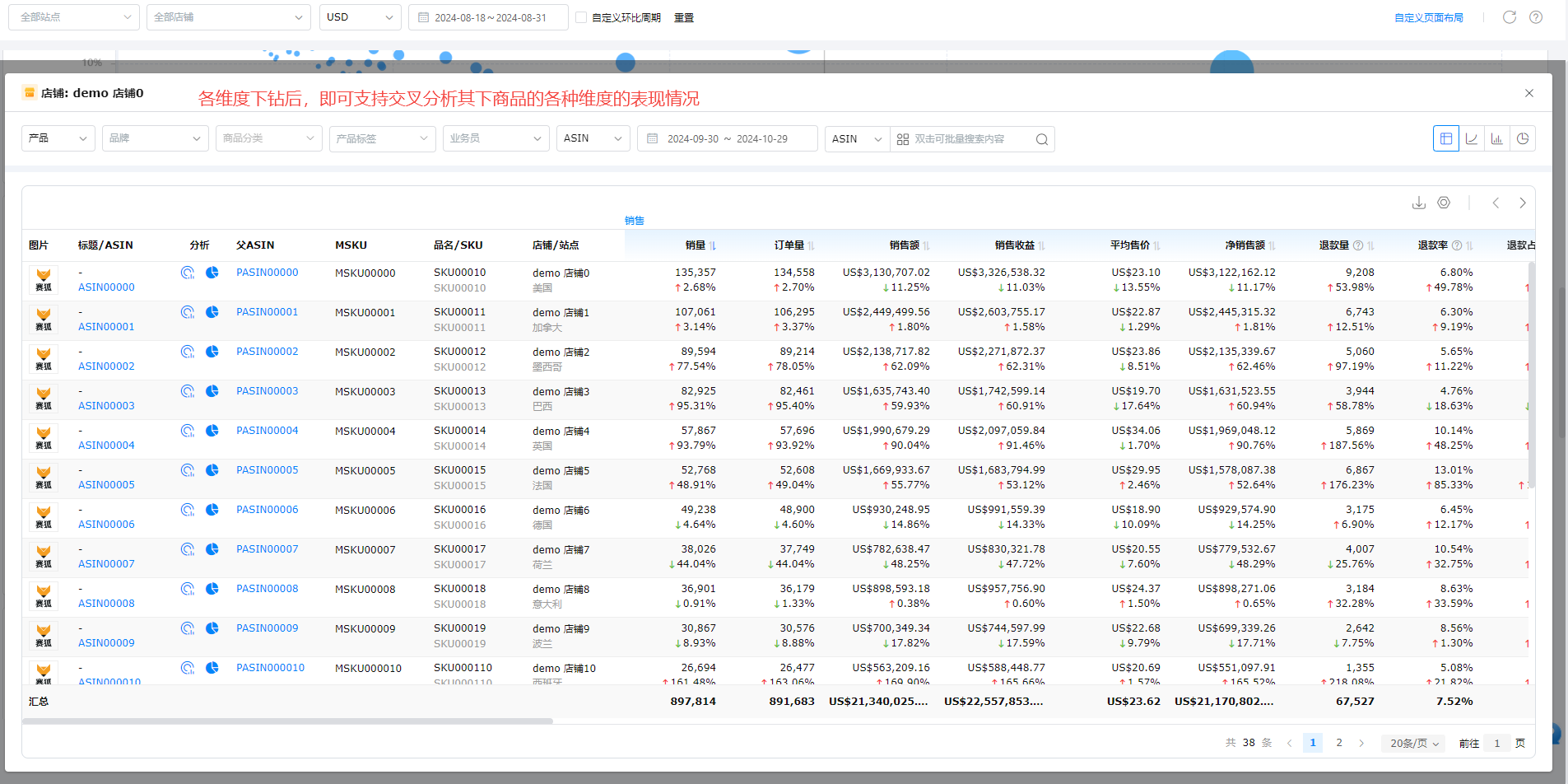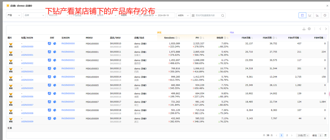 然而,咱们做跨境的都苦于数据冗杂,到处找数据,自己做表格分析很久了。由于系统数据太分散,数据归因疲于找数据,费时间。很多时候卖家心里的独角戏是能不能给我一个下钻分析的按钮?我们会发现,作为公司负责人的你,想看一下目前公司每个店铺都有多少存货,有没有一个看板可以展示?并且我想看每个店铺下是哪些SKU存货多?最重要的是不要让我到处找数据,我就想在一个看板满足这么多需求,谁来帮我搞?这个是目前跨境卖家普遍存在的困惑。