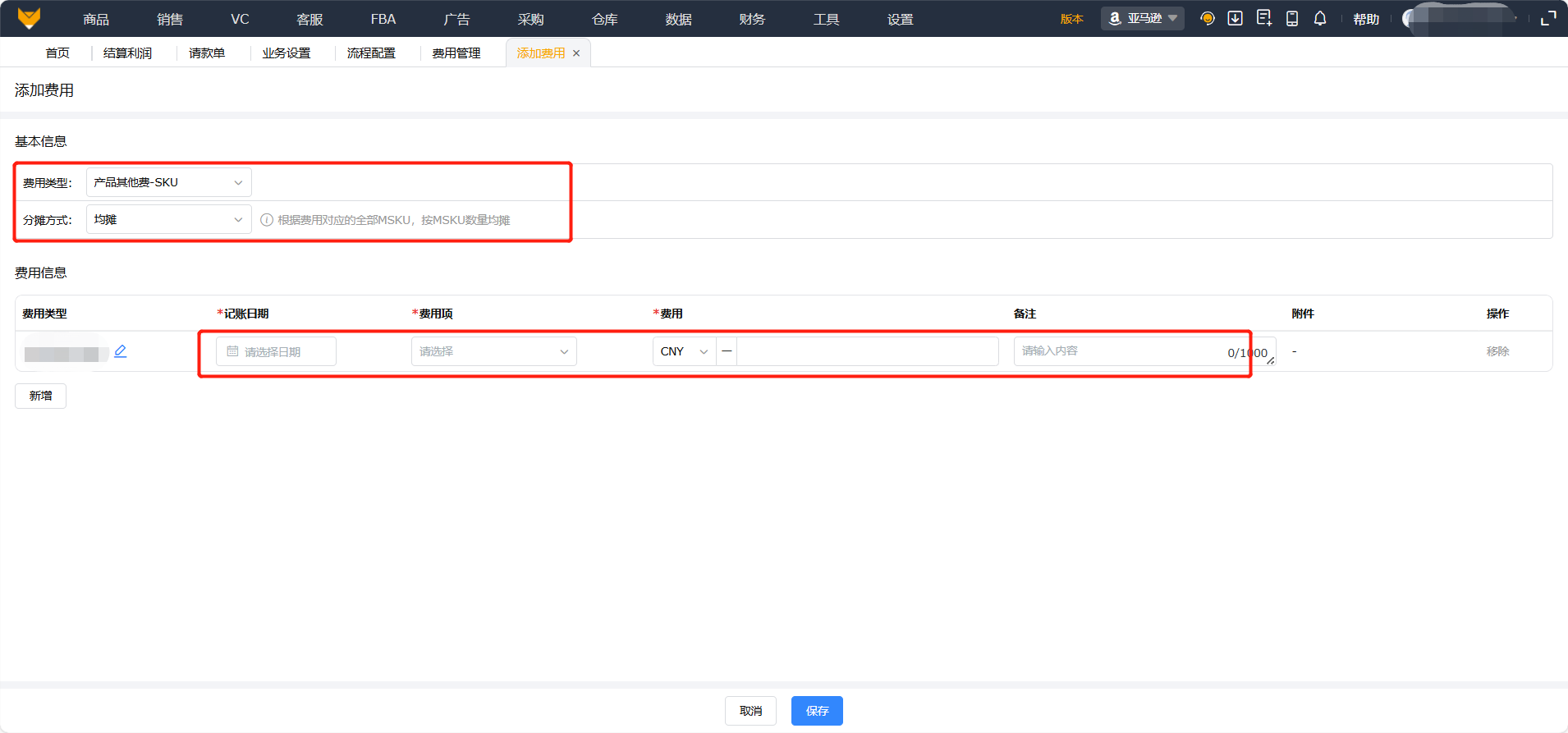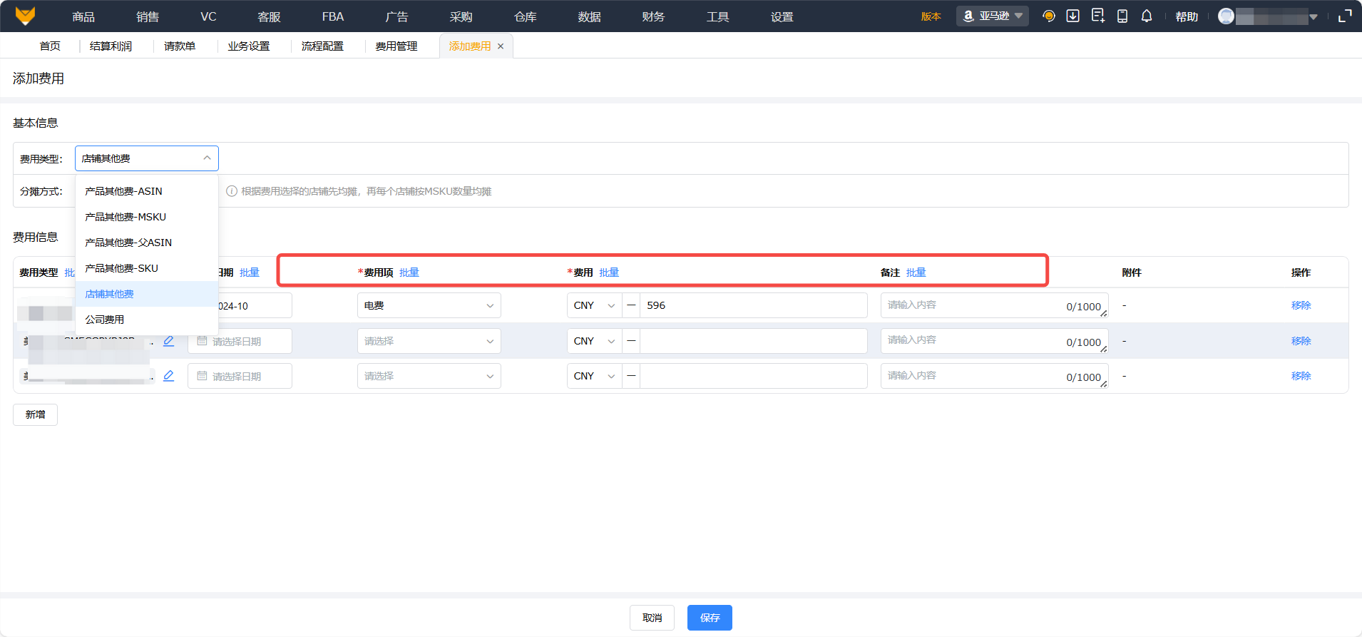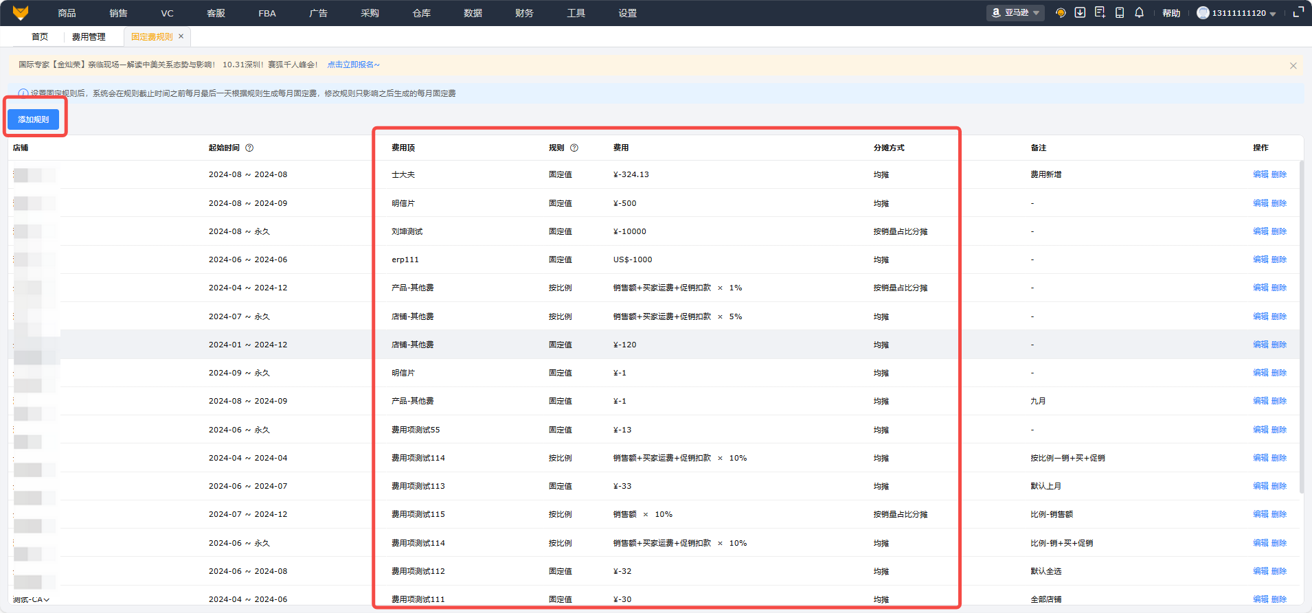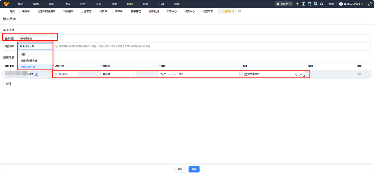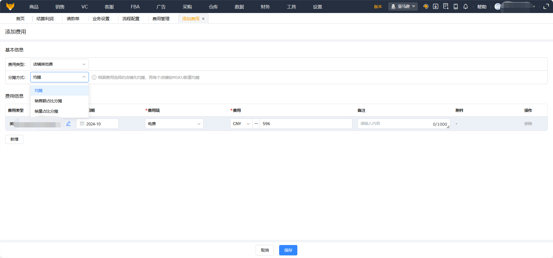 - 自定义店铺级周期性费用分摊-【财务】-【费用管理】-【店铺费用/每月固定费】