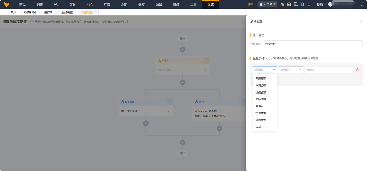 赛狐财务支持用户从站外费用创建>请款>请款审批>审批付款>完成付款全部在系统完成。请款审批流支持多层审批设置,覆盖卖家不同部门不同条件或签会签场景