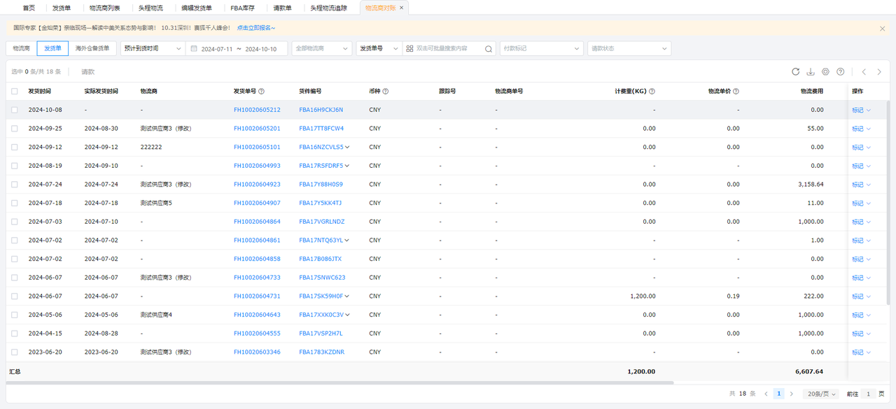 - 物流商对账功能:赛狐ERP提供了物流商对账功能,可以按物流商、发货单、备货单等多维度筛选汇总,用户可以查看不同维度下的头程费用汇总,帮助财务快速核对产生的物流运费,生成财务请款单,跟物流商进行结账。